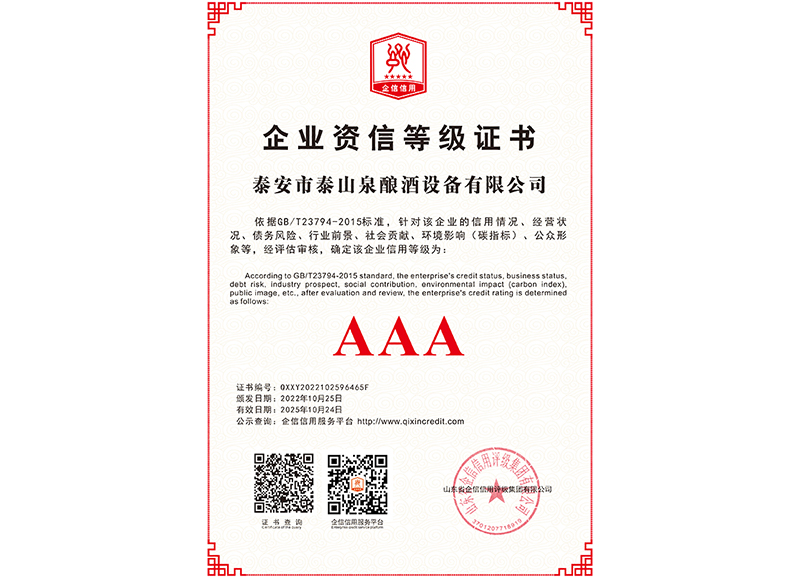 泰安市泰山泉釀酒設(shè)備有限公司,是一家專業(yè)從事釀酒設(shè)備機(jī)械化研發(fā)并集技術(shù)咨詢,工程設(shè)計(jì),制造安裝,人員培訓(xùn)及售后服務(wù)為一體的綜合性企業(yè),本公司主要產(chǎn)品為:大曲清香、小曲清香、大曲醬香、大曲濃香等香型白酒機(jī)械化設(shè)備。  本公司與中國(guó)科學(xué)院自動(dòng)化研究所簽訂技術(shù)服務(wù)合同,引進(jìn)先進(jìn)技術(shù),研究生產(chǎn)全自動(dòng)化機(jī)械釀酒設(shè)備,由中國(guó)科學(xué)自動(dòng)化研究所的技術(shù)支持,打造最先進(jìn)的生產(chǎn)釀酒設(shè)備,公司有信心打造全國(guó)最先進(jìn)白酒...